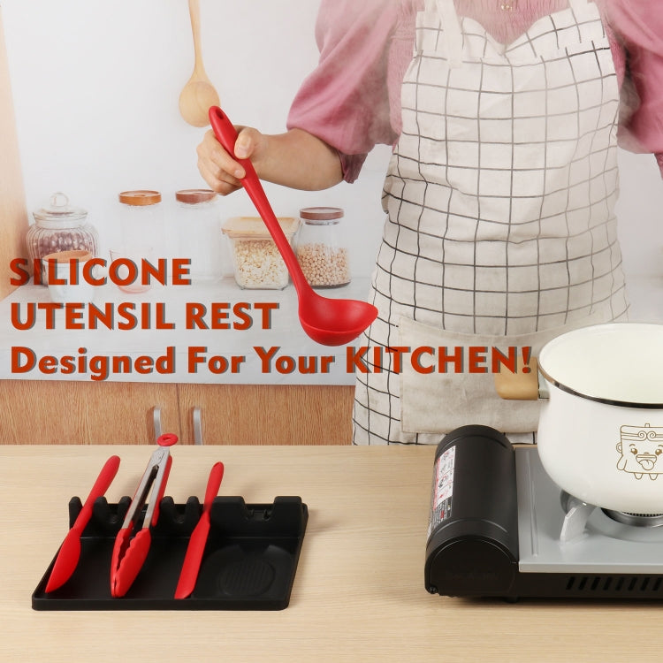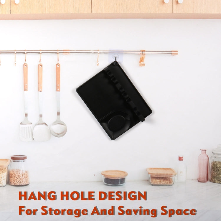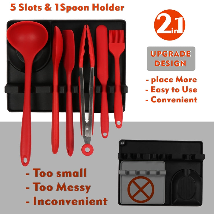 2 in 1 Kitchen Silicone Spoon Holder Shelf Medium (Black)