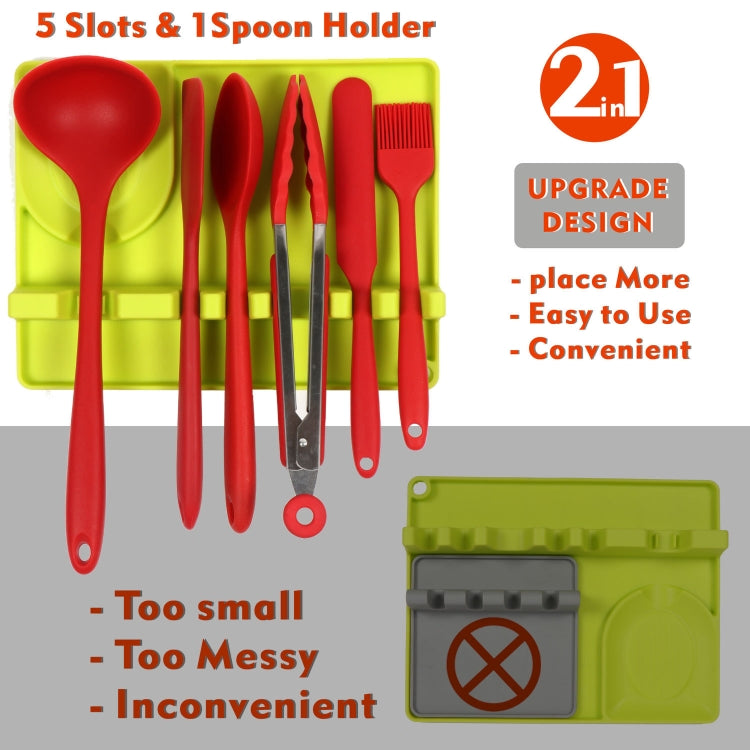 2 in 1 Kitchen Silicone Spoon Holder Shelf Medium (Green)
