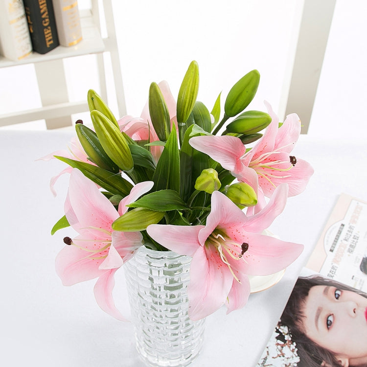 3 Branches Simulation Mini Lily Plastic Fake Flower Home Decoration Photography Wedding Supplies(Light Pink)