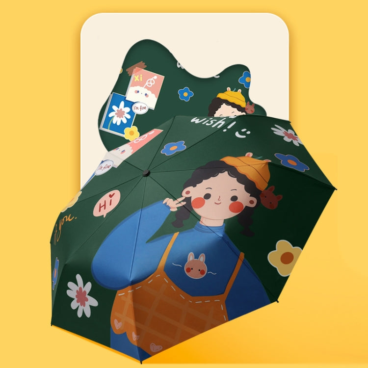 3-fold 8-bone Hand-opened Sunny and Rainy Umbrella Black Glue Sunscreen Umbrella(Ink Green)