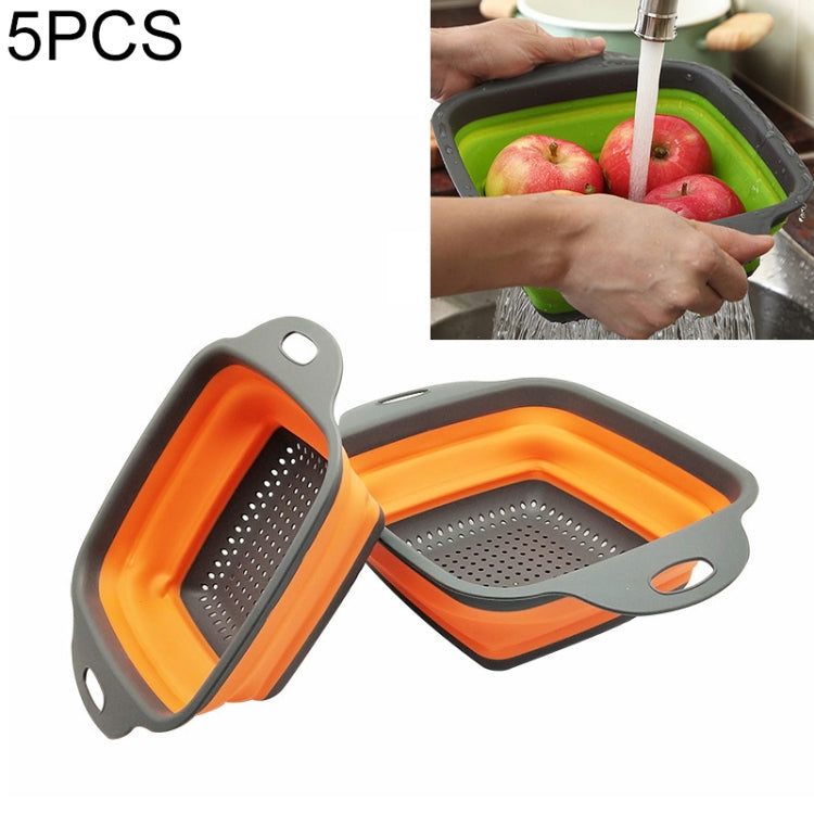 5 Sets Square Foldable Drain Basket Set Kitchen Silicone Fruit Vegetables Retractable Filter, Specification: Small + Large(Orange)