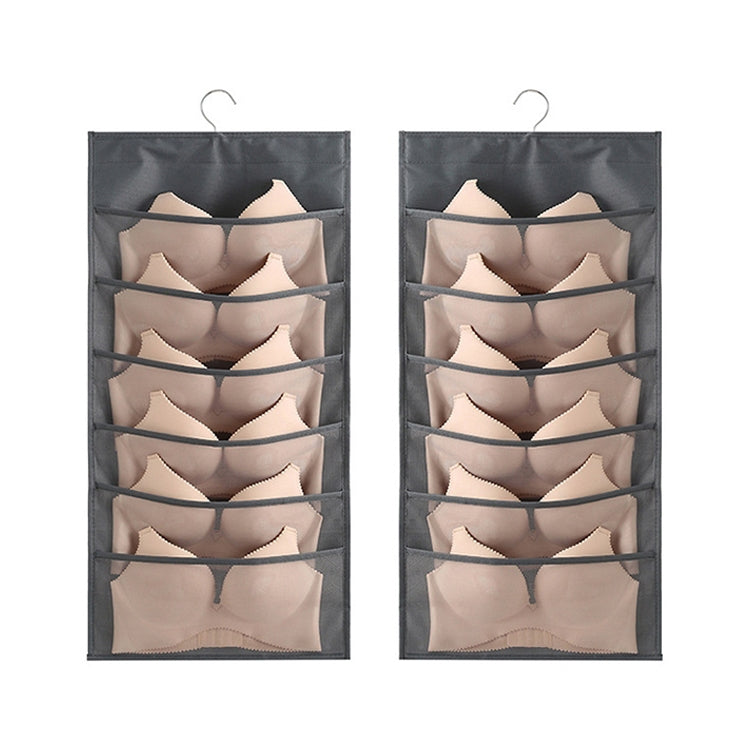 6+6 Grids Underwear Storage Bag Non-woven Double-sided Hanging Storage Bag(Grey)