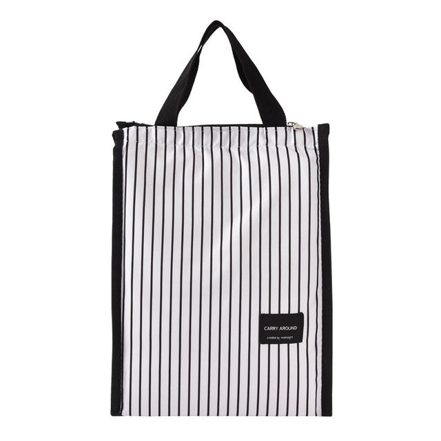 Black White Stripes Portable Thermal Lunch Bags for Women Kids Men Food Picnic Cooler Box Insulated Tote Bag Storage Container(White stripe)