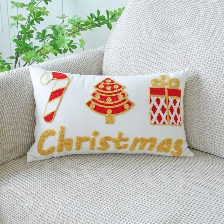 Christmas Embroidery Pillowcase Canvas Sofa Cushion Cover, Pillow Core Not Included, Style: 30x50cm Gold Christmas