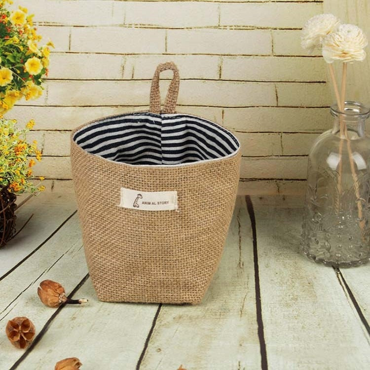 Cotton and Linen Cloth Art Flowerpot Small Sack Hanging Storage Basket, Style:Stripes(Blue)