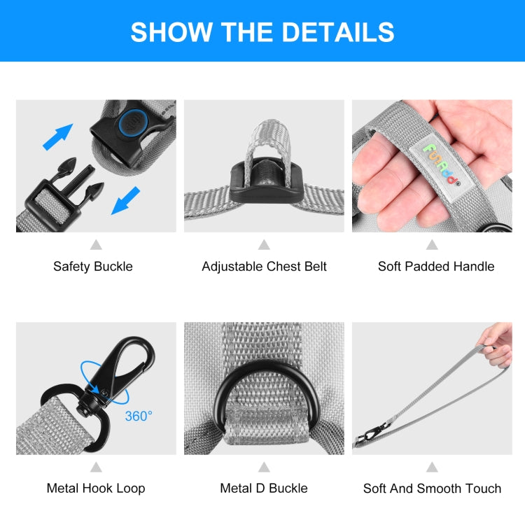FunAdd حبل الجر عاكس النايلون تنفس سترة الكلب تسخير، الحجم: S (رمادي)