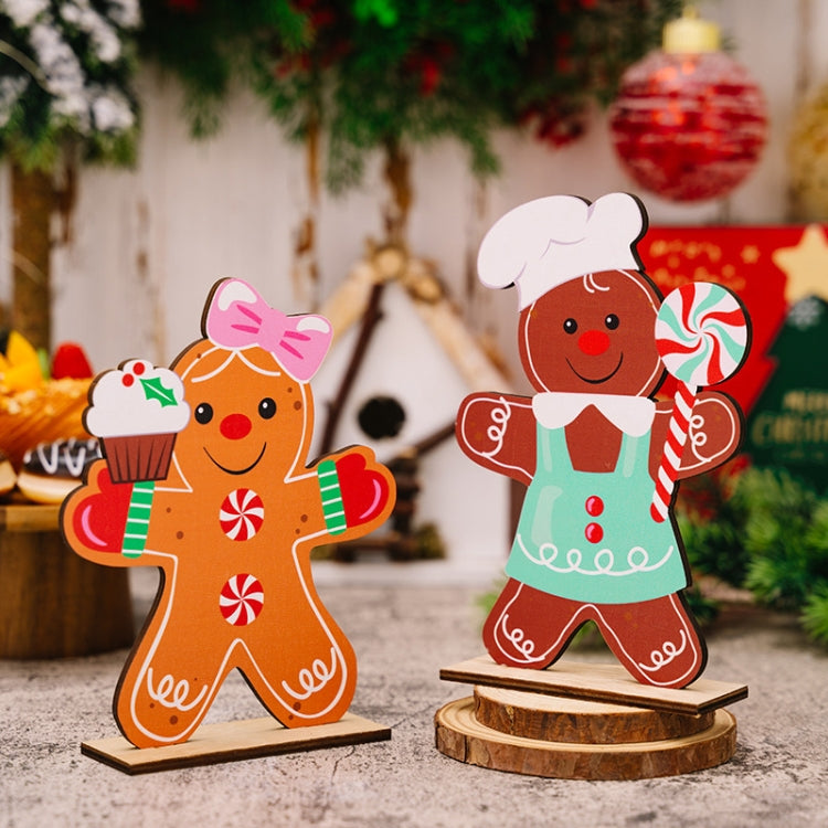 Gingerbread Man Wooden Ornament Christmas Decoration Supplies(Female)