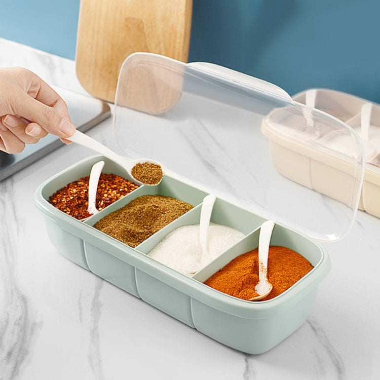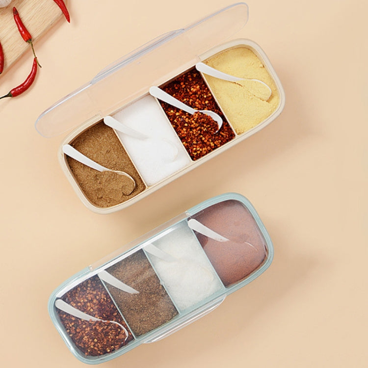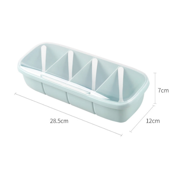 Kitchen Compartment Plastic Seasoning Box Spice Jar with Spoon & Lid(Blue)