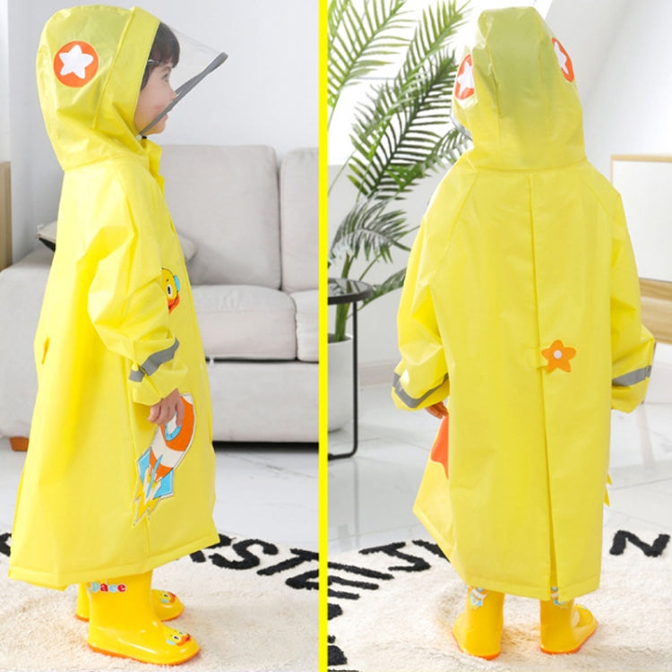 Large Hat Brim Cartoon Print Children Raincoat with Schoolbag Seat, Size: M(Yellow)