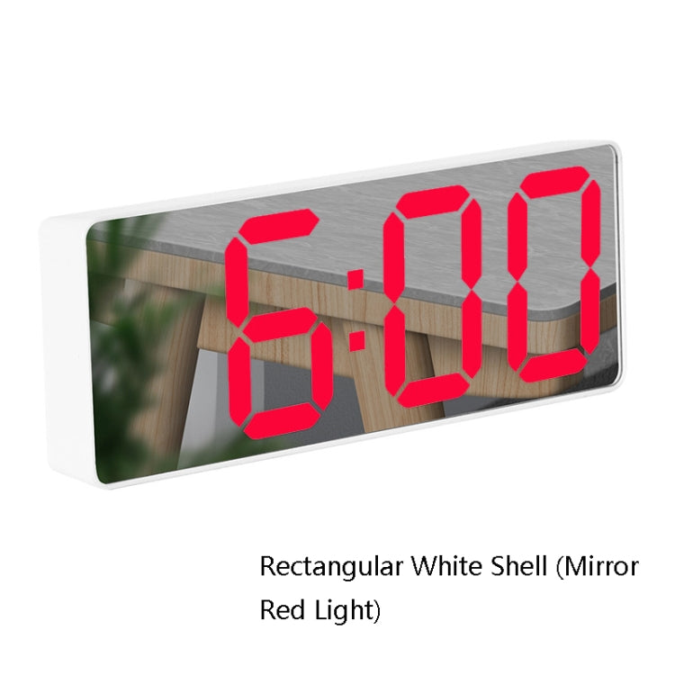 Mirror Bedside Alarm Clock Battery Plug-In Dual-Purpose LED Clock, Colour: Rectangular White Shell (Mirror Red Light)