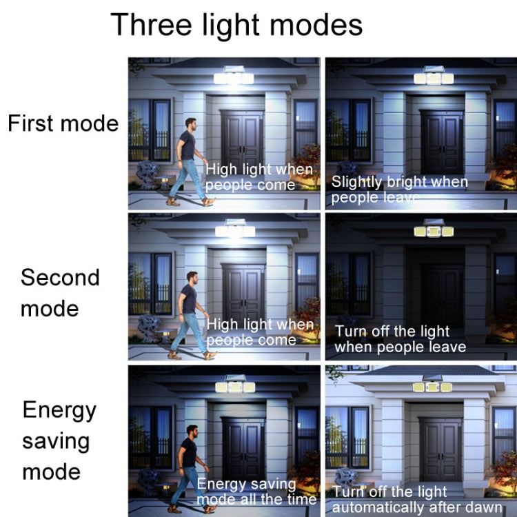 Outdoor Triple Head 224LEDs Dual Sensor Solar Wall Light Rotating Body Sensor Light Garden Home Lighting, Style: Split
