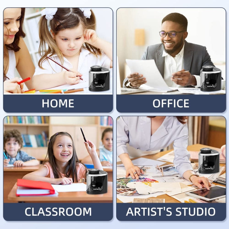 TENWIN مبراة أقلام كهربائية للطلاب، مبراة شبه أوتوماتيكية، موديل البطارية (أسود)