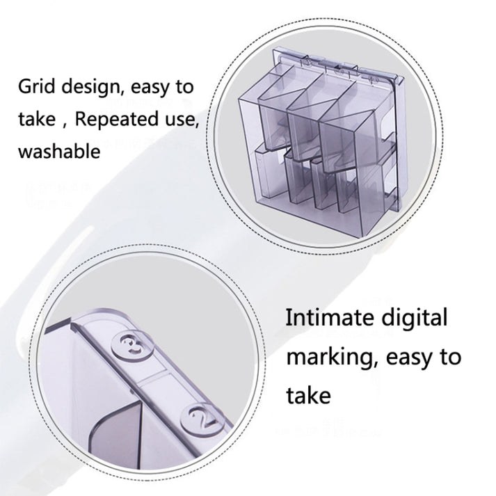 The storage box is designed specifically for multiple compartments that keep all your comb attachments or accessories in their respective places. The drawers are numbered to organize by size or type; it would be especially handy to have for clipper guards, comb attachments and so on-combinations that are easy to mix up or lose track of. Being able to keep each item in its slot saves time and frustration, making your grooming session smoother and more efficient.