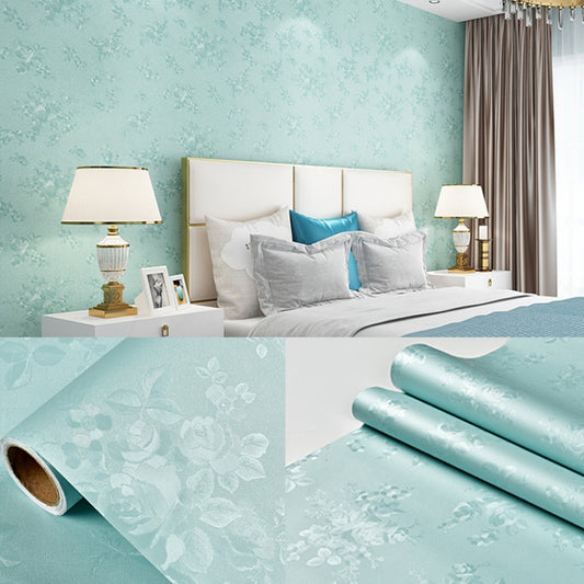 0.6 x 5m Pastoral Style Damascus PVC Self-Adhesive Wallpaper Restaurant Milk Tea Shop Glass Stickers(Light Blue Rose)