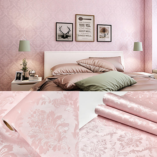 0.6 x 5m Pastoral Style Damascus PVC Self-Adhesive Wallpaper Restaurant Milk Tea Shop Glass Stickers(Pink Rose)