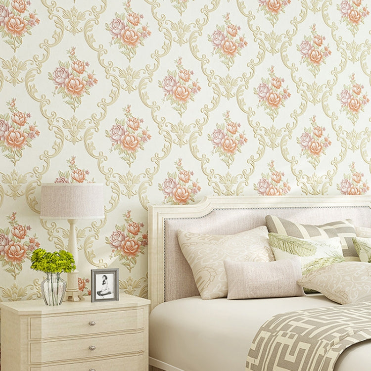 0.53 x 3m 3D Pastoral Style Wallpaper Bedroom Living Room Non-Woven Fabric Self-Adhesive Wall Sticker(203072 Beige)