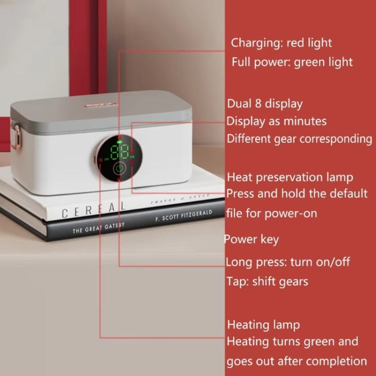 1000ml USB Rechargeable Lunch Box Wireless Heating Bento Box Timing Adjustment(White)