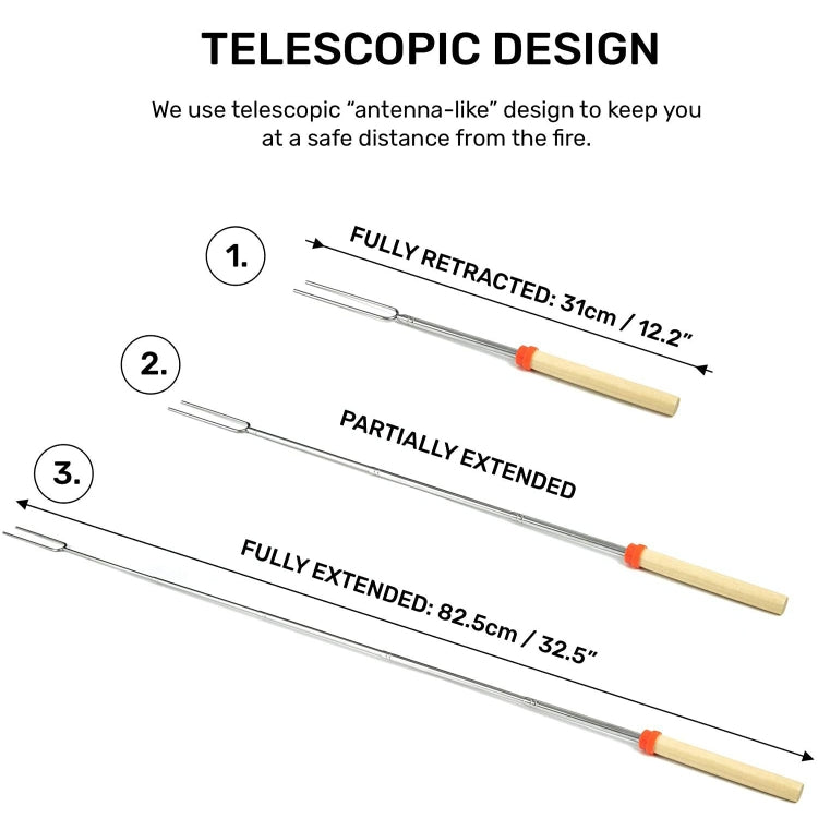1124-7 شوكة شواء مارشميلو خشبية قابلة للسحب، Spsc: حقيبة برباط