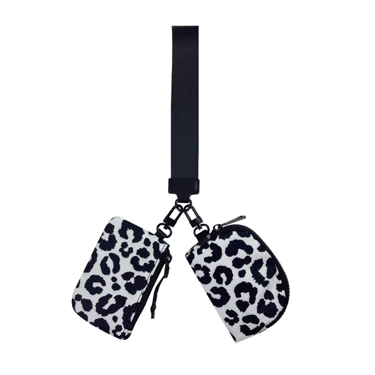 حقيبة معصم محمولة 2 في 1 وحامل بطاقات وحقيبة تخزين صغيرة للعملات المعدنية (أسود وأبيض ليوبارد)