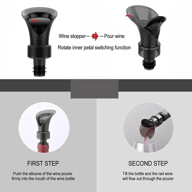 2-in-1 Red Wine Cacuum Stopper Wine Pourer Quick Sobering Device(Black Petal Type)