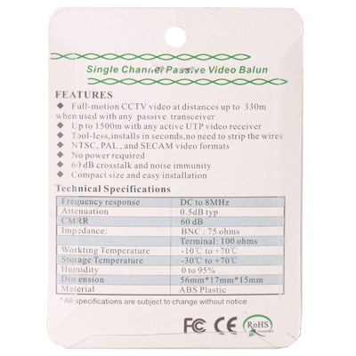 2 قطعة UTP شبكة فيديو Balun CAT5 إلى كاميرا CCTV BNC DVR O-611 (أبيض)
