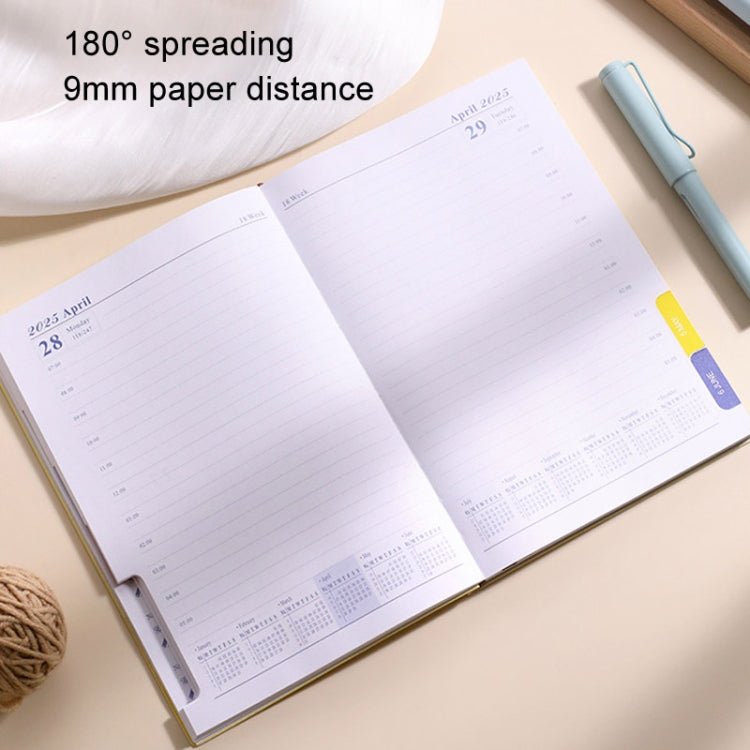 2025 Calendar A5 Planner Soft Leather Daily Planner Notebook, Color: Yellow English