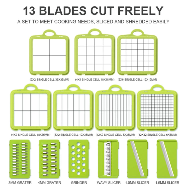 2. يمكن قطع 13 نوعًا من الشفرات حسب رغبتك، مجموعة واحدة يمكن أن تلبي احتياجات الطبخ، وتقطيعها وتقطيعها بسهولة.