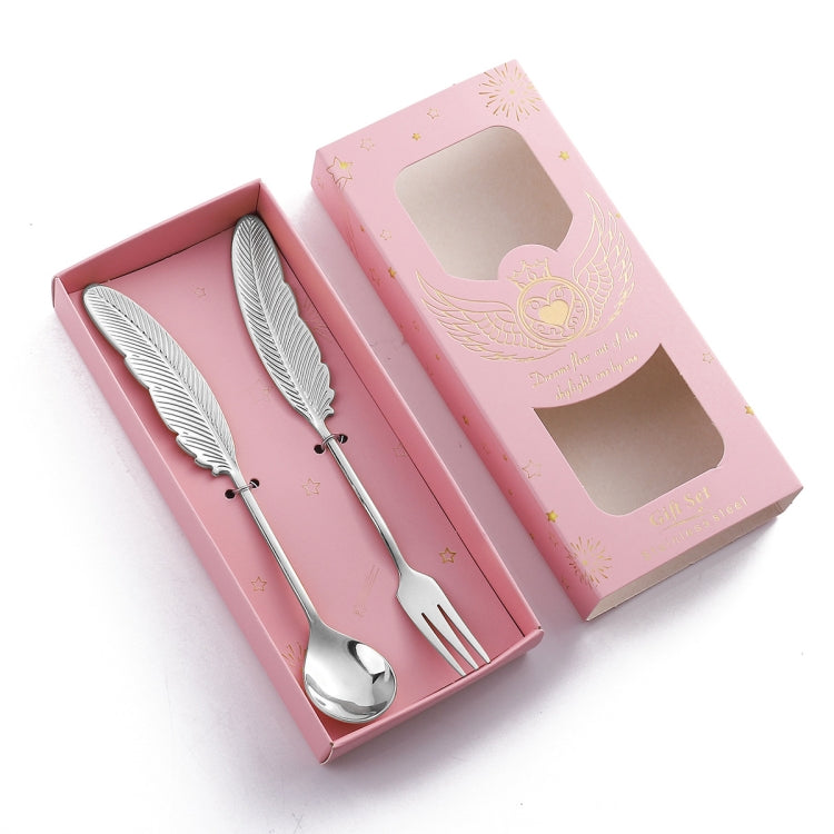 304 Stainless Steel Feather Spoon Fork Literary Tableware,Style: 2 In 1 True Color -Pink Box