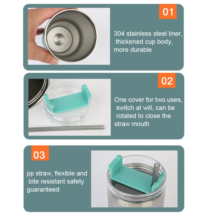 30oz Glitter Insulation Coffee Cup Double Layer Ice Cup Stainless Steel Car Cup With Straw(Green Purple)