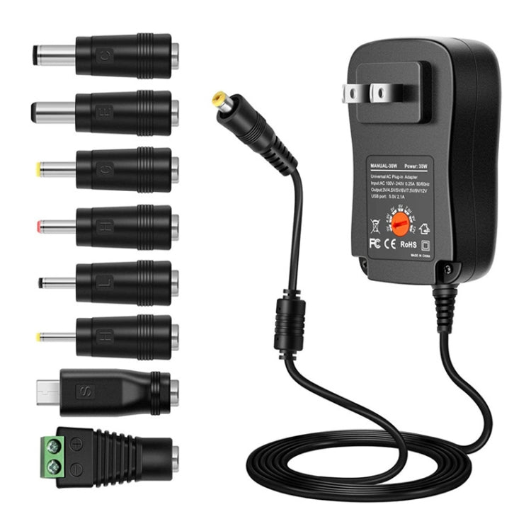 30W USB واجهة محول الطاقة قابل للتعديل مع مراقبة الطاقة الصمام الخفيفة، المواصفات: الولايات المتحدة التوصيل