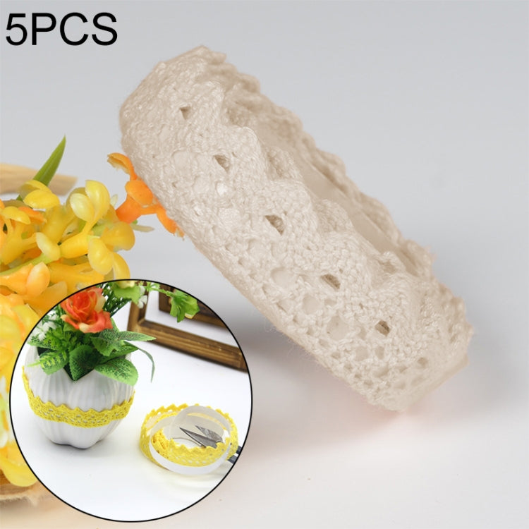 5 PCS Cotton Lace Fabric White Crochet Lace Roll Ribbon Knit Adhesive Tape Sticker Craft Decoration Stationery Supplies(Beige)