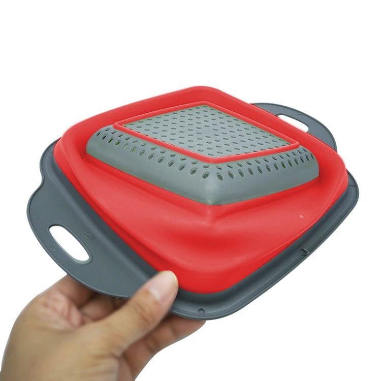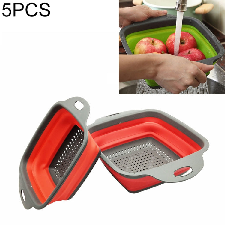 5 مجموعات مربعة قابلة للطي سلة استنزاف المطبخ سيليكون الفاكهة الخضروات مرشح قابل للسحب، المواصفات: صغير + كبير (أحمر)