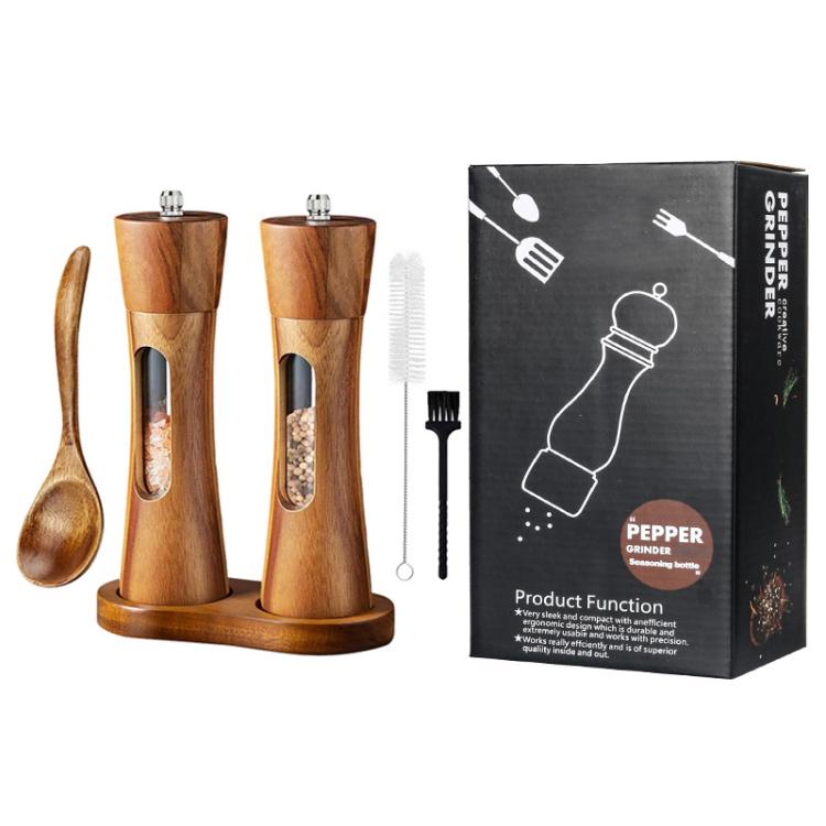 8 inch Acrylic Pepper Grinder Pagoda-shaped Wooden Kitchen Pepper Mill, Spec: Double+Base+Spoon+Steel Brush+Black Brush