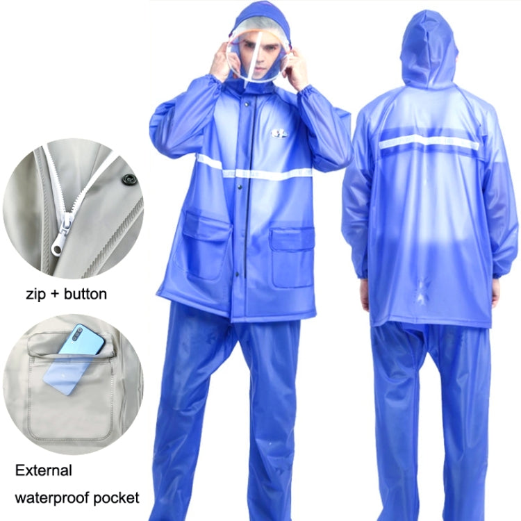 Adult Anti-Riot HD Double Brim Raincoat Rainpants Sets, Size: L(Sea Blue)