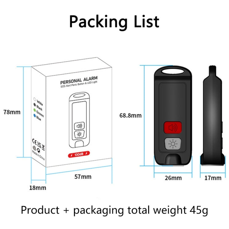 1. Mainly used for women, students, the elderly and vulnerable groups to seek help in times of crisis. When you unplug the plug in a dangerous or emergency situation, the high-decibel alarm will sound immediately and the LED light will flash