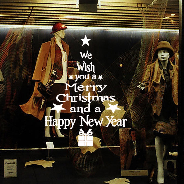Blessing Christmas Tree Living Room Window Glass Door Removable Christmas Wall Sticker Decoration(White)