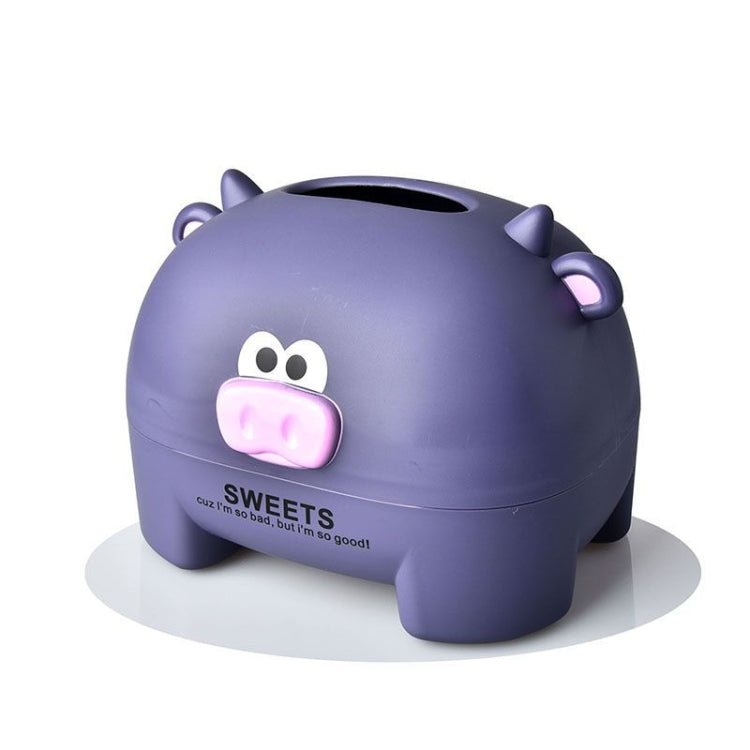 Cartoon Calf Tissue Box Household Desktop Roll Paper Tube(Blue Purple)