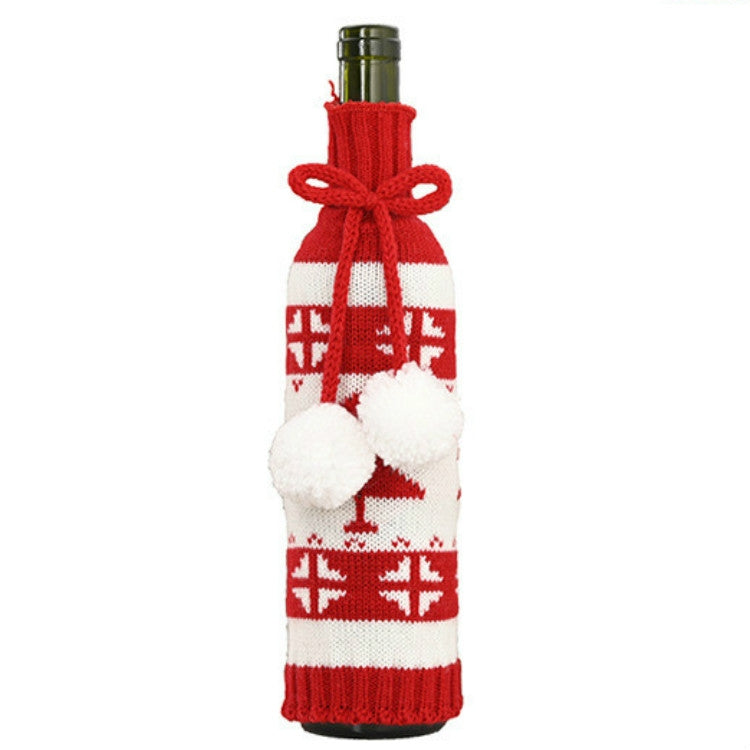 Christmas Knitted Double Ball Wine Bottle Cover Wine Bottle Bag Restaurant Atmosphere Layout(Small Tree)