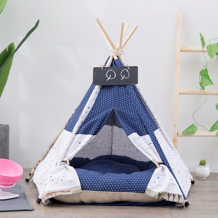 Cotton Canvas Pet Tent Cat and Dog Bed with Cushion, Specification: Small 40×40×50cm(White Dots)