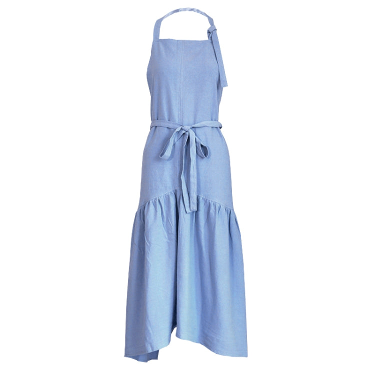 مريلة طويلة ضيقة من القطن والكتان بتصميم ذيل السمكة، وزرة متجر مانيكير الزهور (أزرق)