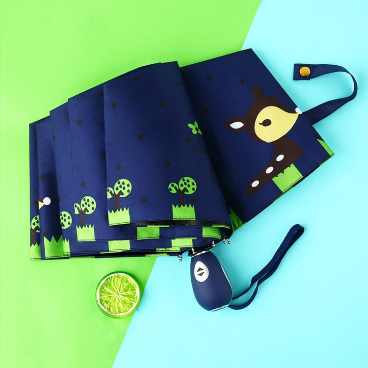 Creative Cute Cartoon Children Full Automatic Sun Umbrella Folding Vinyl Umbrella(Navy)