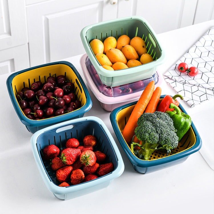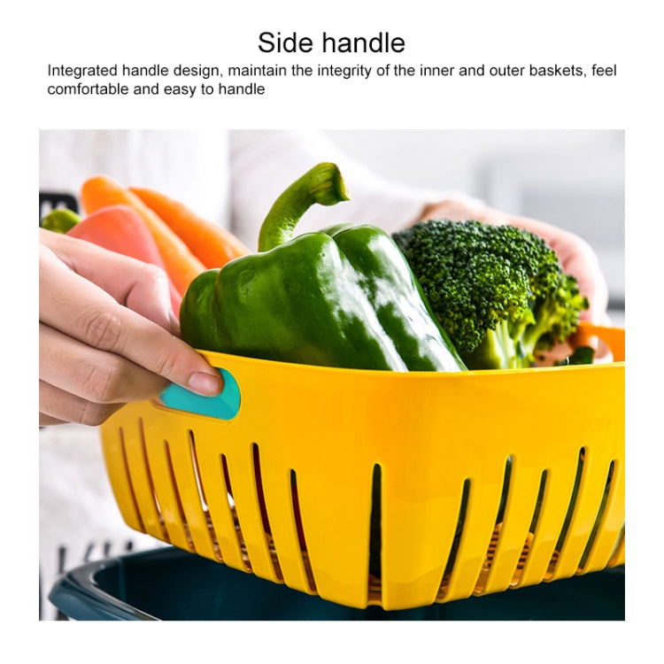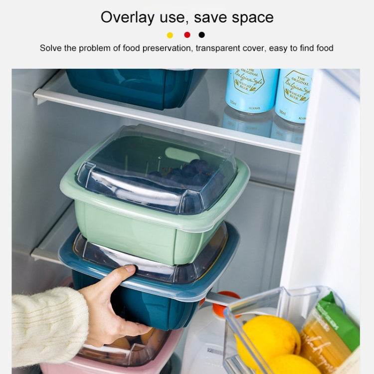 Creative Multifunctional Double-deck Drain Basket Kitchen Refrigerator Fresh Box Plastic Fruit Storage Basket with Lid(Yellow)