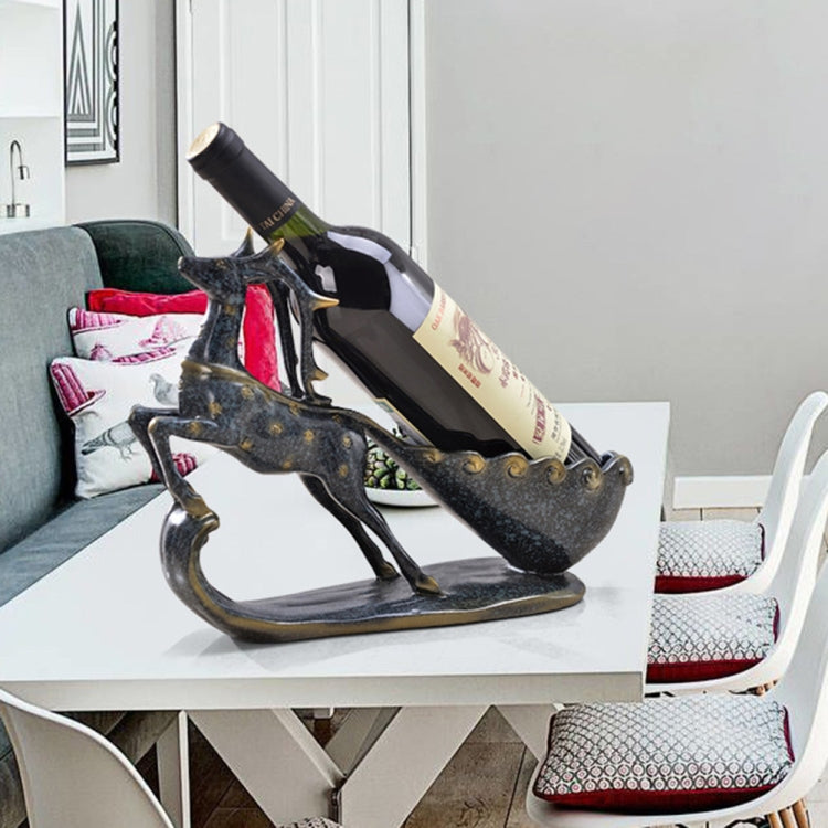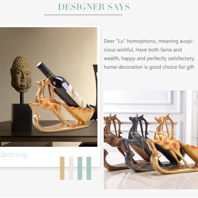 Creative Sika Deer Shape Wine Shelf Drain Rack Bottle Holder Living Room Ornaments Gift (Gold)