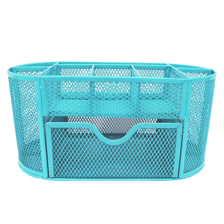 Desk Organizer 9 Grids Metal Mesh Office Pen Pencil Holder(Blue)