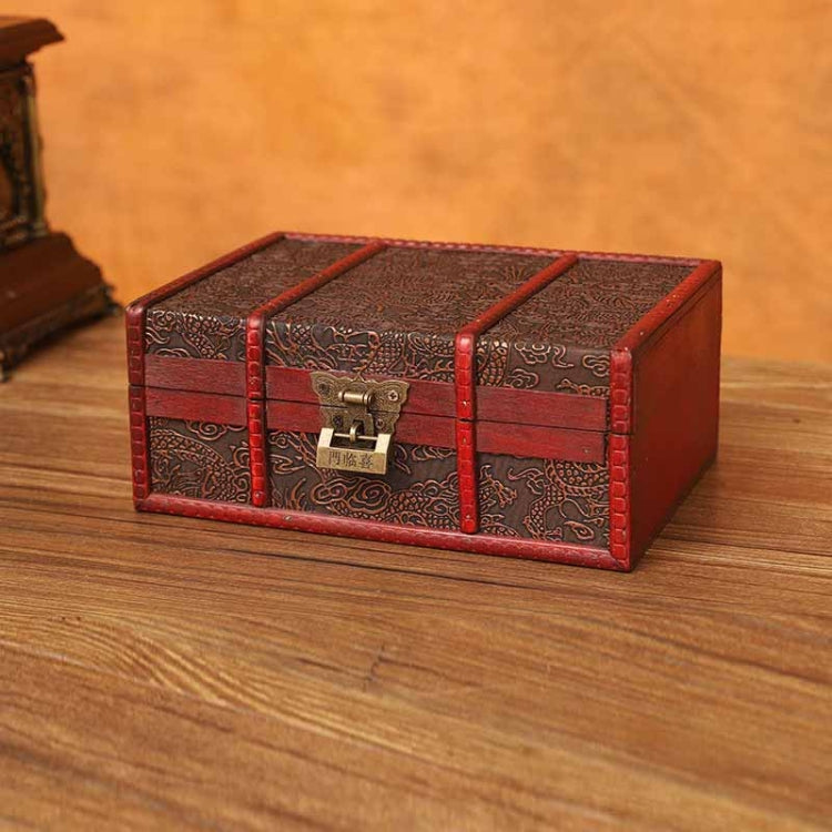 Desktop Book Finishing Retro Box Wooden Jewelry Storage Box With Lock, Size: 23cmx16cmx9.5cm(6801F-DH02 Dragon Pattern Small + Lock)