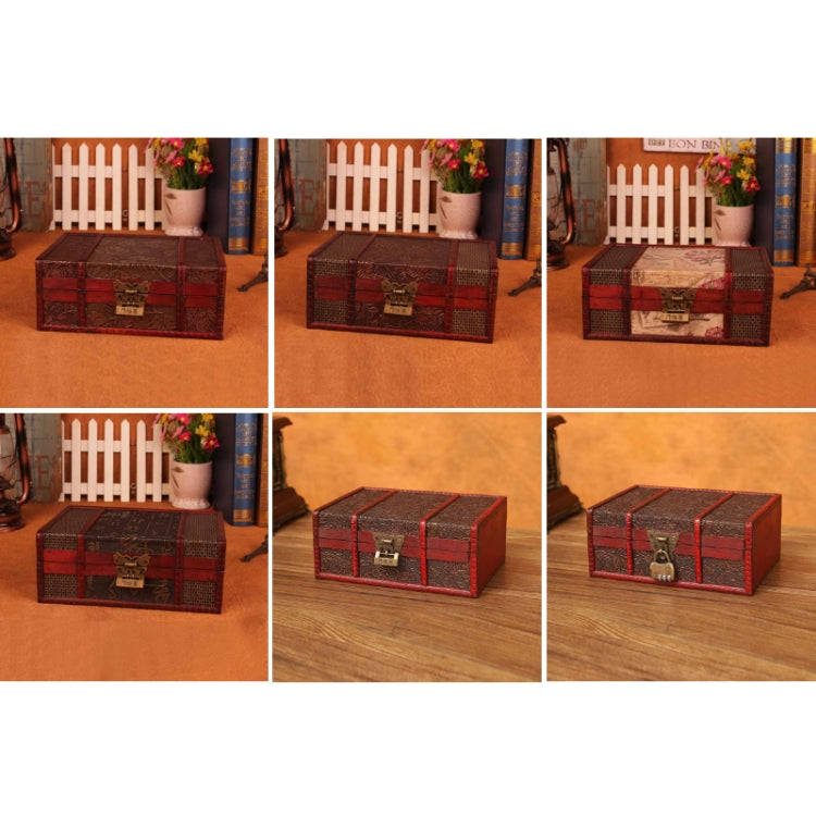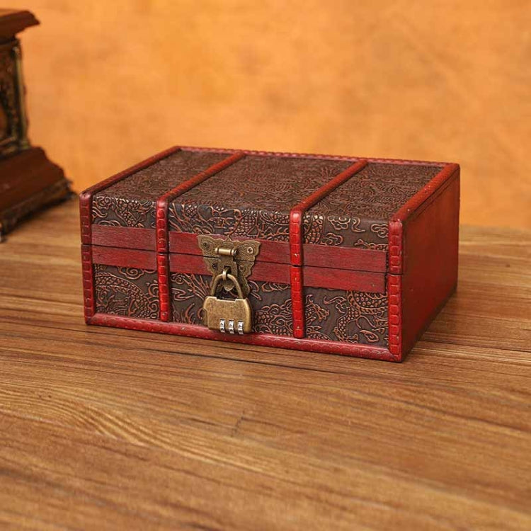 Desktop Book Finishing Retro Box Wooden Jewelry Storage Box With Lock, Size: 23cmx16cmx9.5cm(6801F-DH10 Dragon Pattern Small + Password Lock)