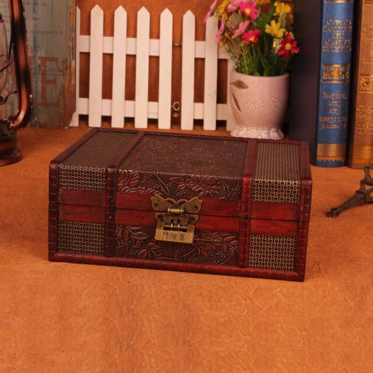 Desktop Book Finishing Retro Box Wooden Jewelry Storage Box With Lock, Size: 23cmx16cmx9.5cm(Grape With Lock)