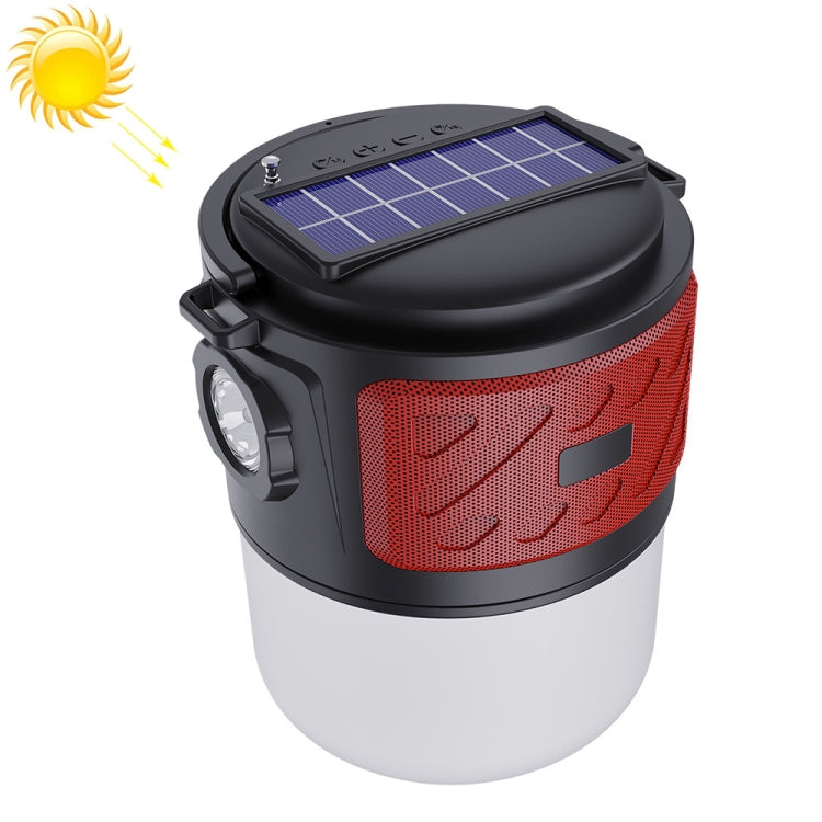 DV-V12 مكبر صوت بلوتوث يعمل بالطاقة الشمسية للتخييم في الهواء الطلق وبطاقة FM (أحمر)