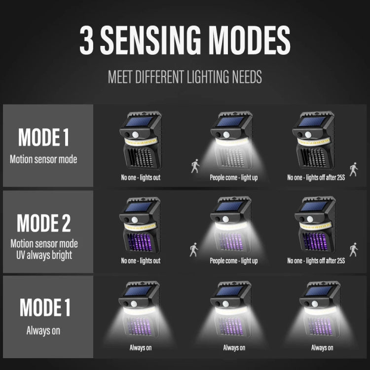 E-SMARTER W792 LED Solar Wall Light With Purple Light Mosquito Control Function Human Intelligent Sensor Outdoor Garden Lamp, Specification: White Light