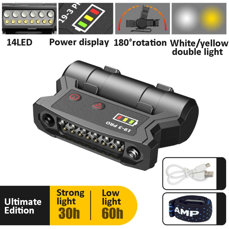 Fishing Headlight Induction Night Fishing Clip Cap Lamp Head-Wearing Small Super Bright Light Rechargeable Cap Clip Lamp,Style: Ultimate Edition (Black)